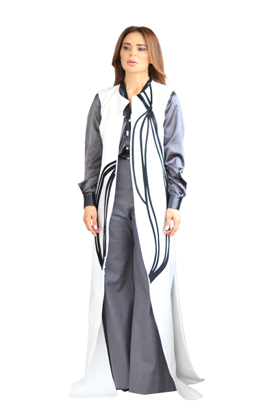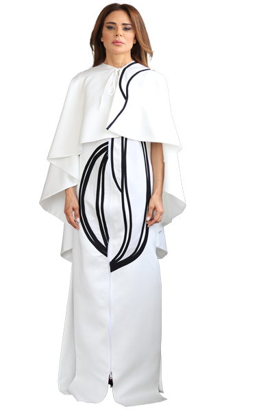 - Adorned with a handmade leaf drawing that continues from the body of the abaya up onto the cape.