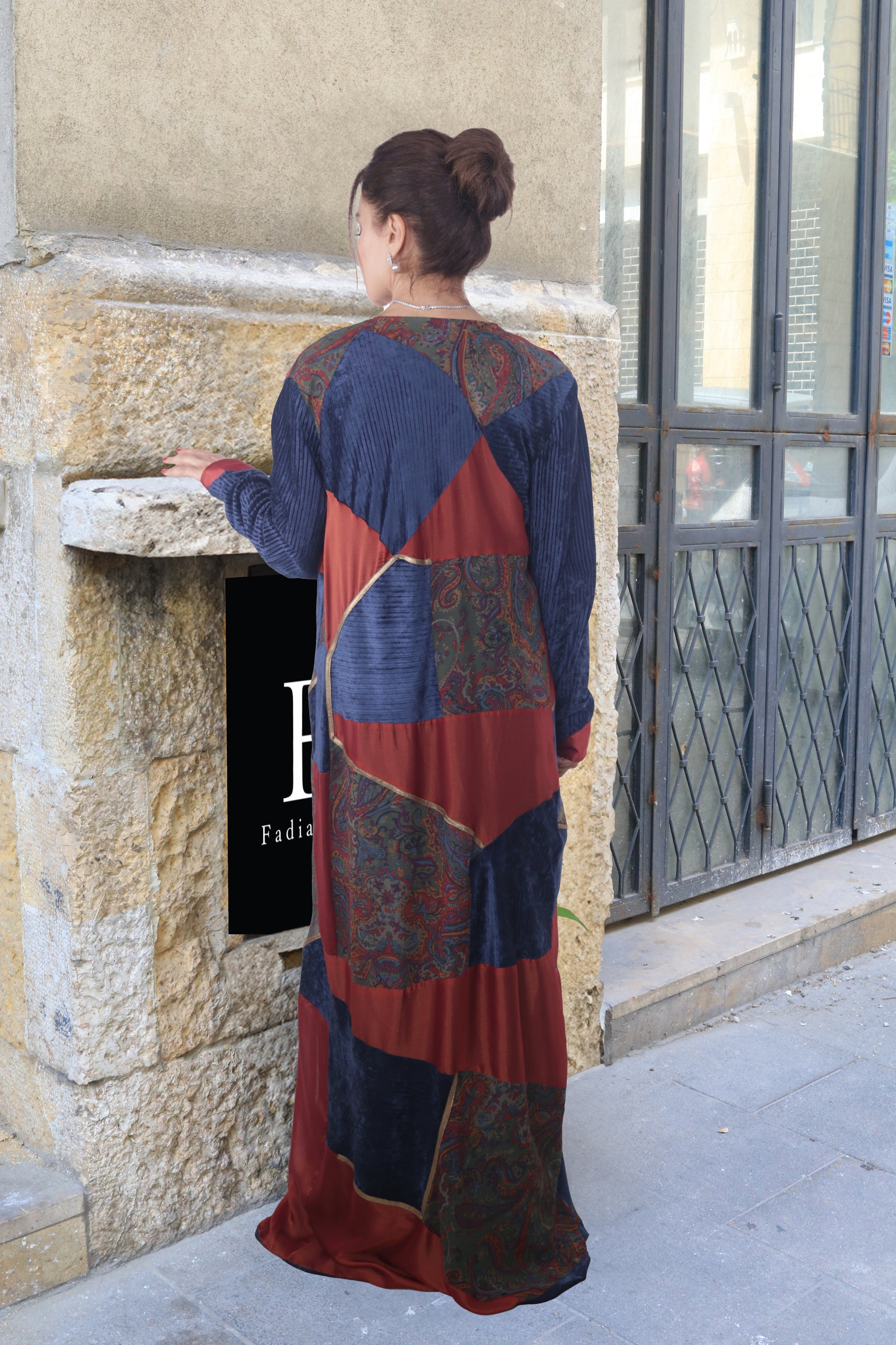 Contact us on WhatsAppThe "Arabask Double Faced Abaya" is a unique and elegant ensemble inspired by Caracalla, blending traditional design elements with contemporary style. The abaya is crafted with a combination of luxurious muslin and velvet fabrics, creating a sophisticated and rich texture. The gold brim adds a touch of opulence and enhances the overall aesthetic.