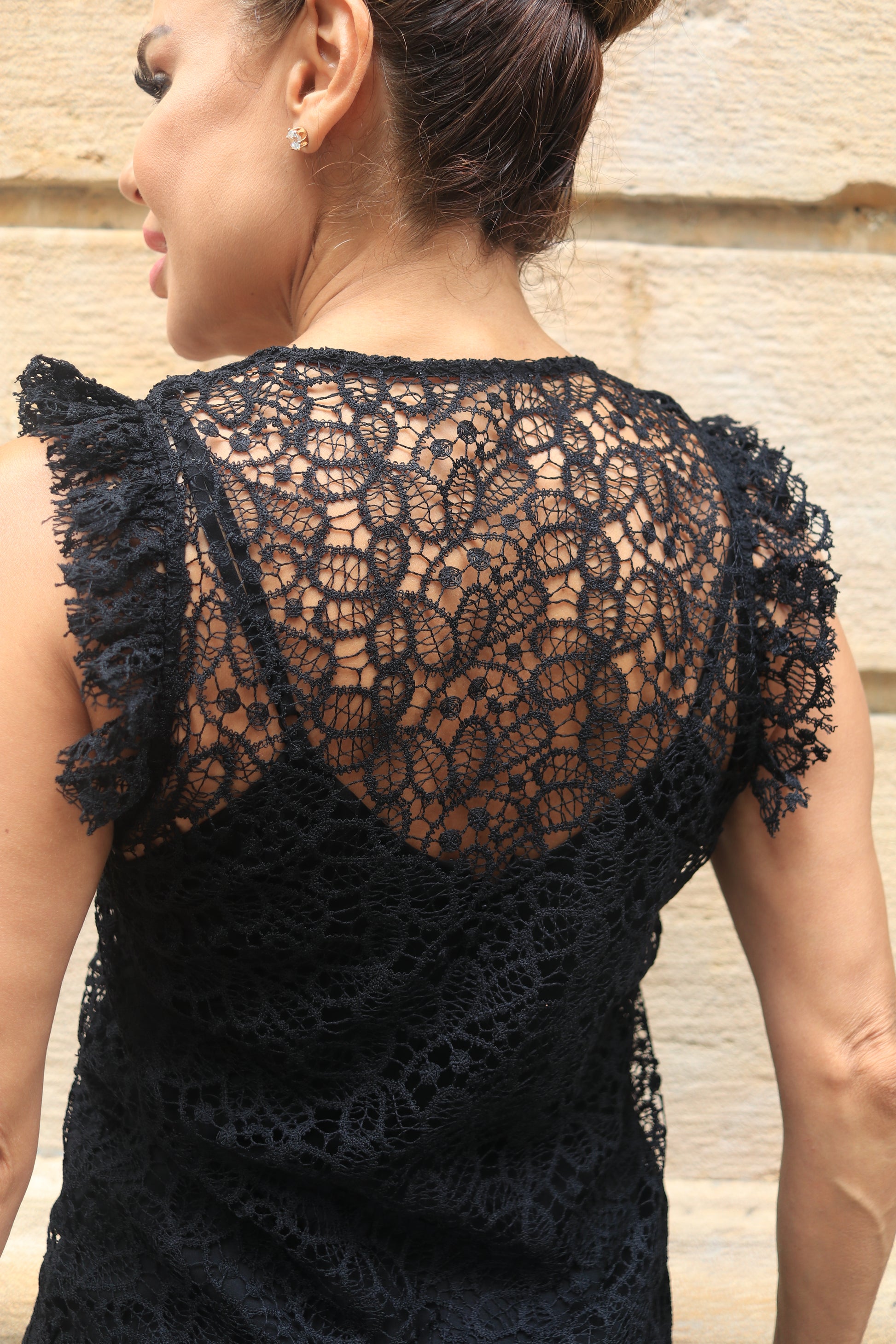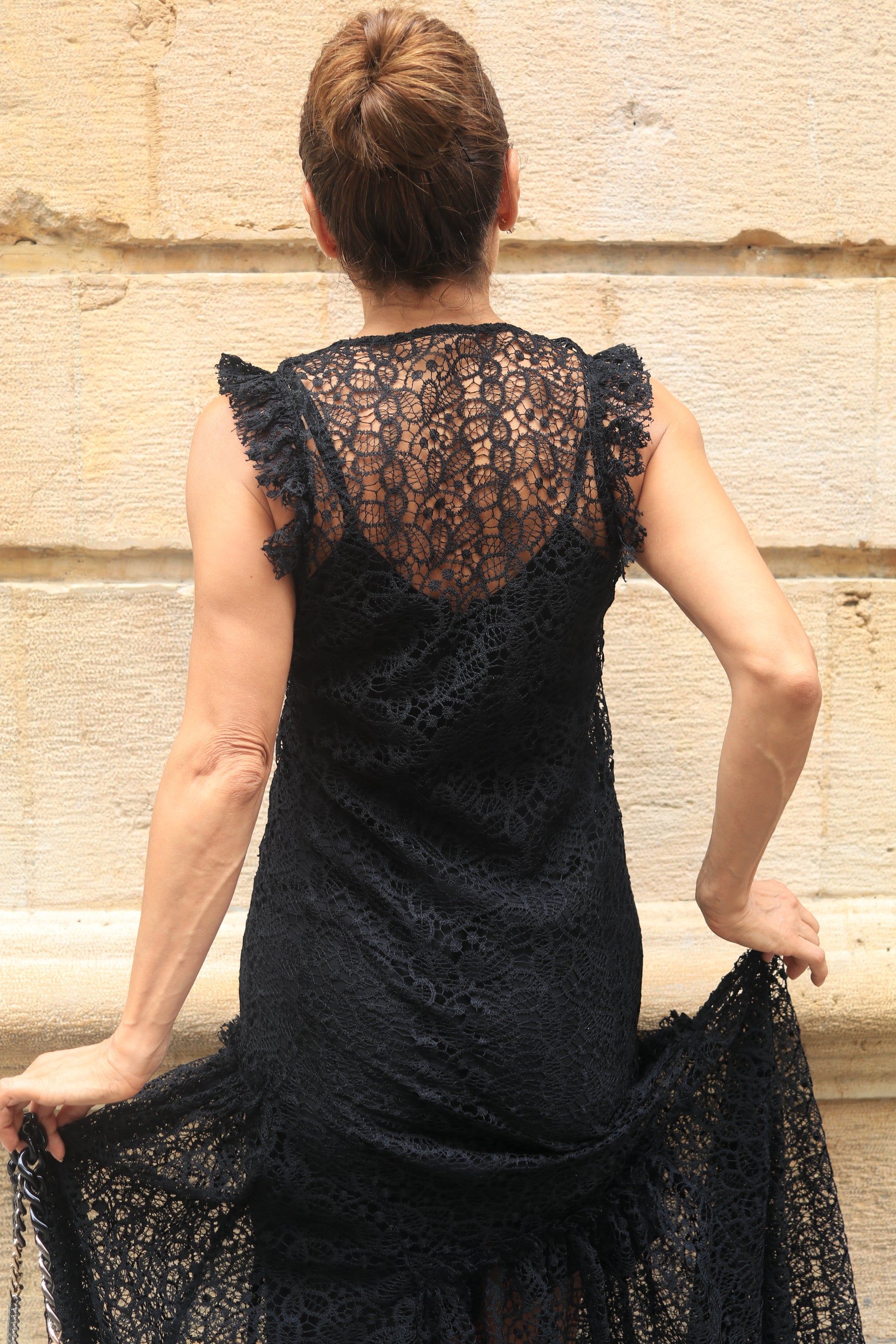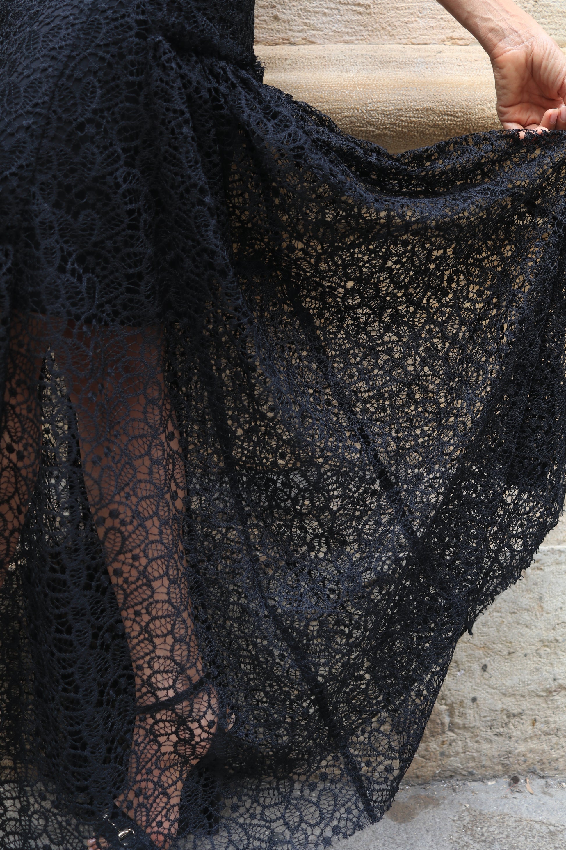Contact us on WhatsAppPresenting the "Dentelle Dress" in black finest dentelle fabric.