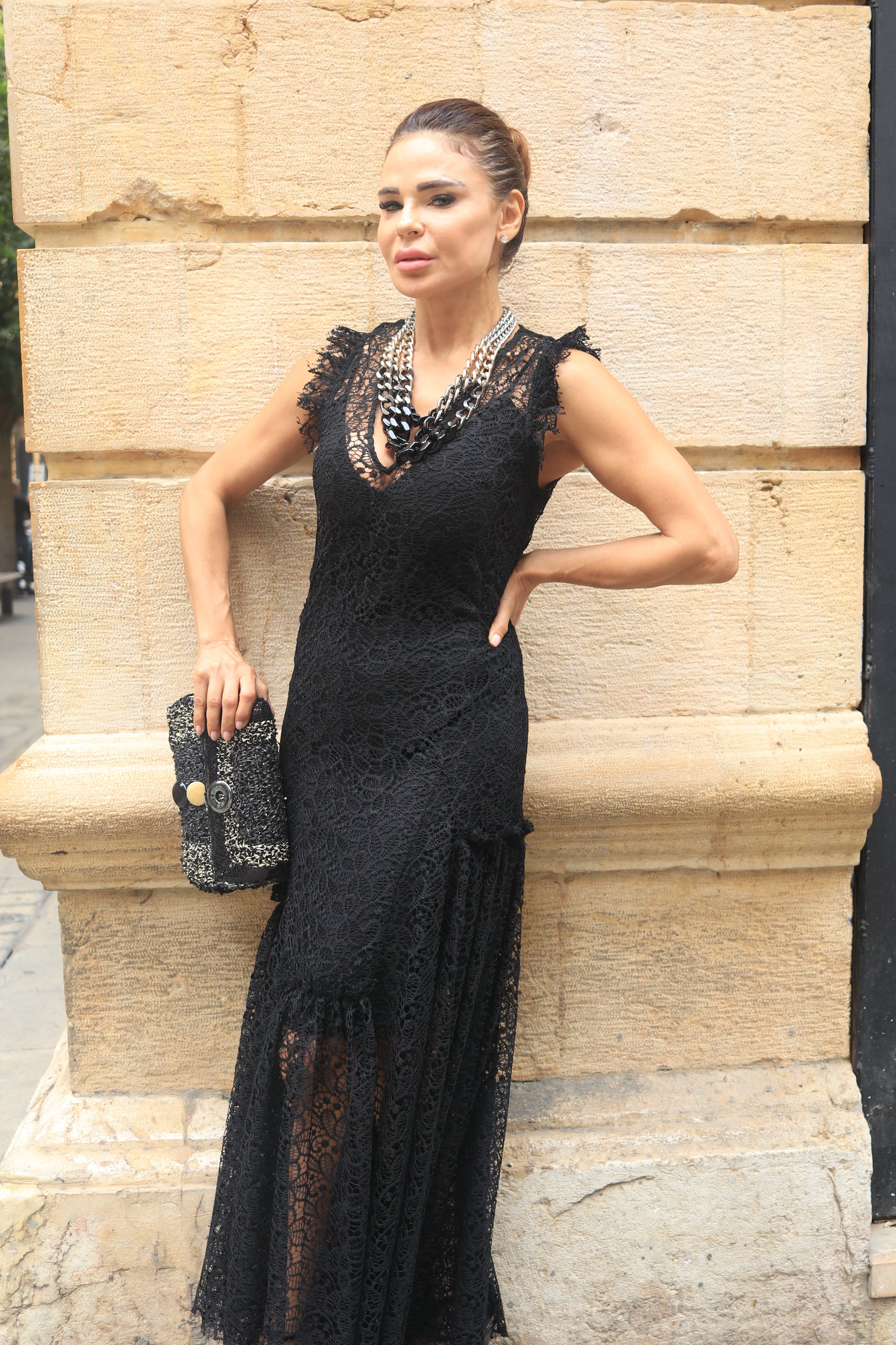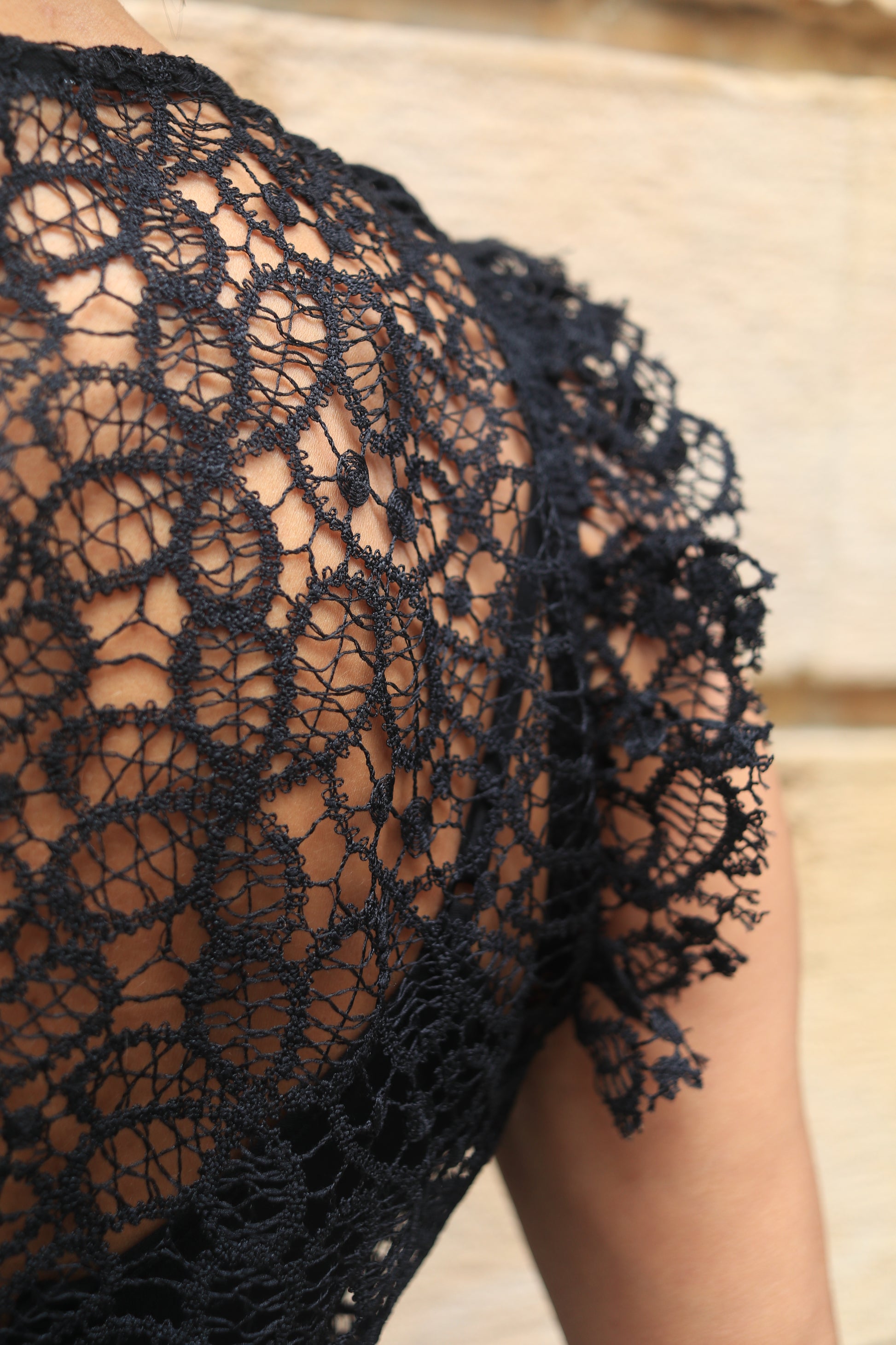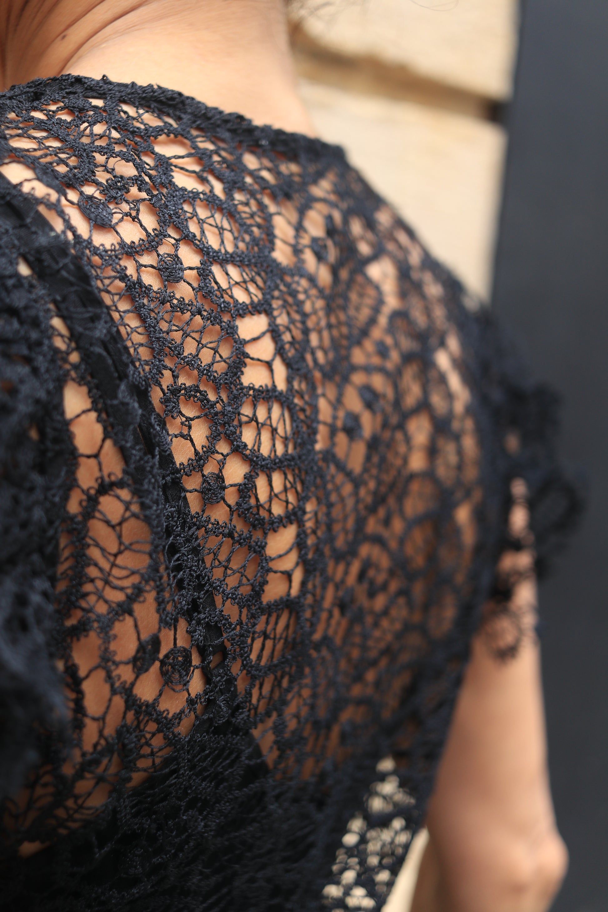 Contact us on WhatsAppPresenting the "Dentelle Dress" in black finest dentelle fabric.
