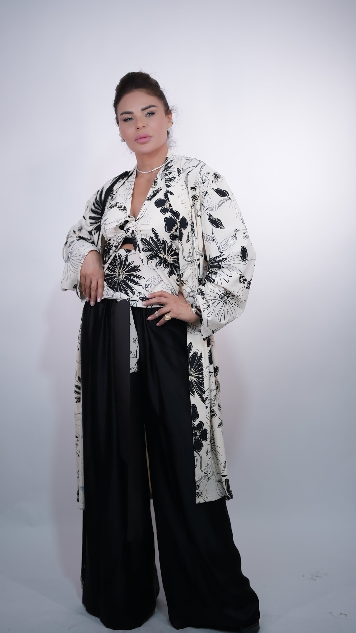Contact us on WhatsAppThis black and white licra abaya features intricate black fringe embroidery and includes a matching belt, priced at $165. It comes with a dual-purpose swimsuit and body combination for $65, offering both style and practicality for various occasions.