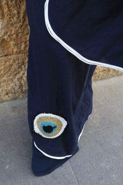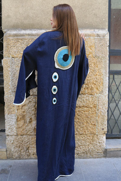 Contact us on WhatsAppThis Abaya Dark Blue is a stylish and elegant garment made of cotton lennon fabric. It is adorned with hand-made crochet eyes pattern embroidery, showcasing intricate craftsmanship. It offers a fashionable and affordable choice for those seeking a unique and sophisticated abaya