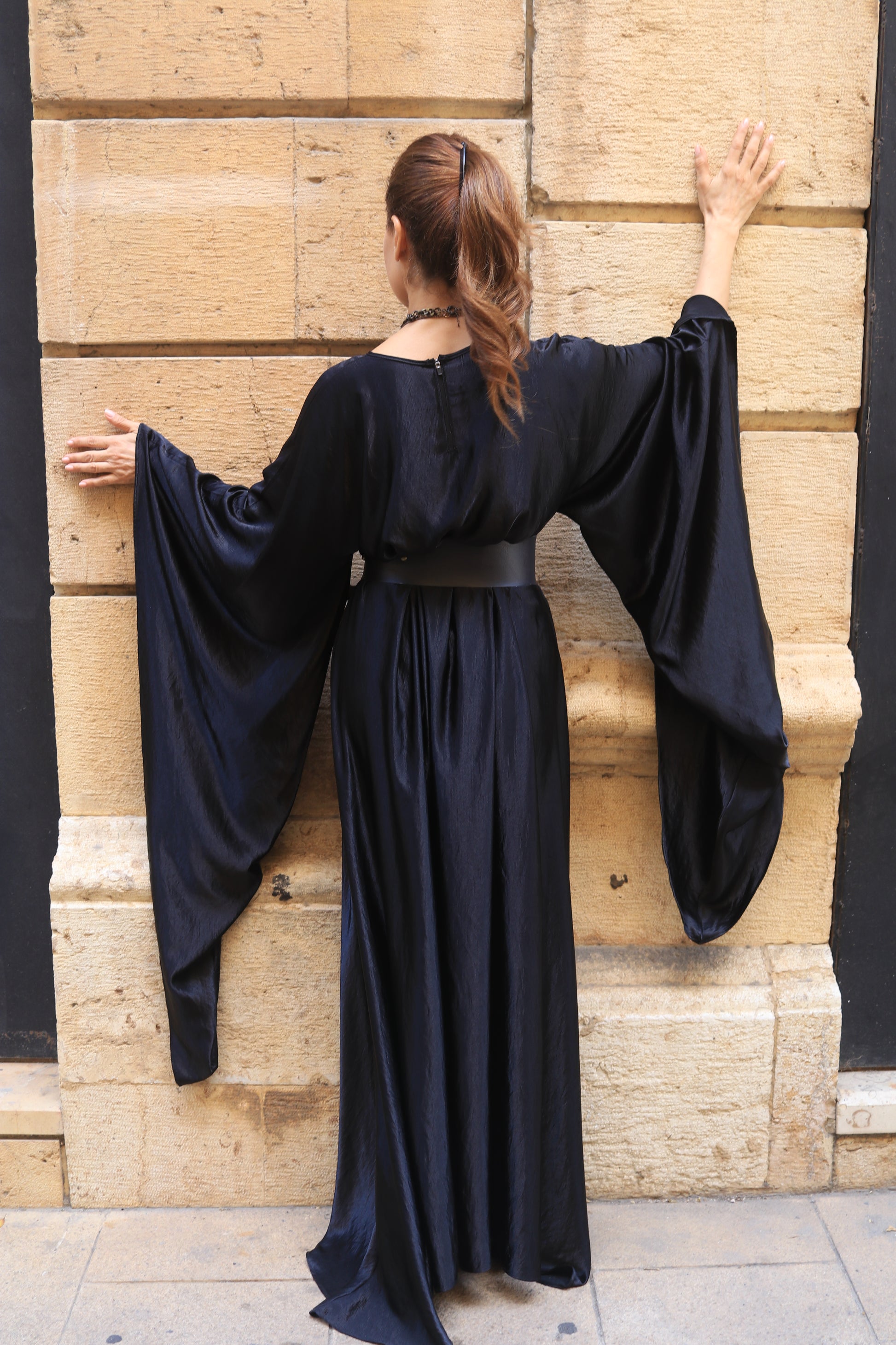 Contact us on WhatsAppThis is a Black Abaya is a cotton laminated crepe garment